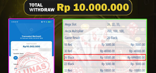 JACKPOT – JACKPOT LIVE GAMES PP MEGA WHEEL 19 FEBUARI 2026, Kemenangan Live Casino, Bukti Kemenangan Live Casino, Kemenangan Live Casino Fortune Roulette, Menang Live Casino, Live Casino Terpercaya, Situs Aman Terpercaya, WD Berapapun Pasti DI Bayar Tuntas, Maxwin Live Casino Online.