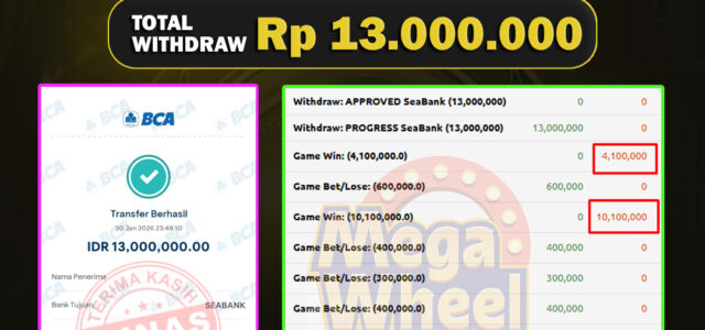 TOTAL KEMENANGAN : Rp. 13.000.000,-
