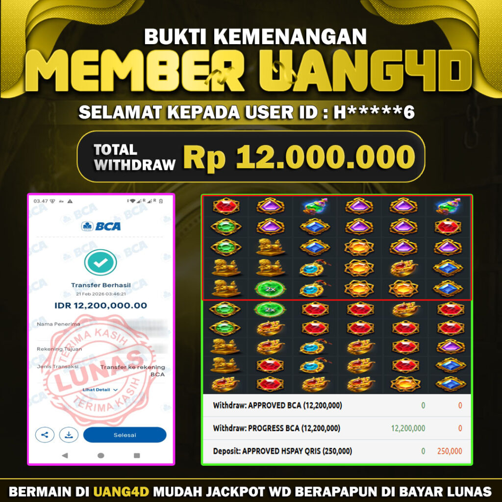 Jangan lewatkan kesempatan untuk meraih kemenangan besar. Daftar sekarang di UANG4D dan rasakan pengalaman bermain slot terbaik yang pernah ada! Putar gulungan, menangkan jackpot, dan jadilah bagian dari komunitas pemain sukses kami!