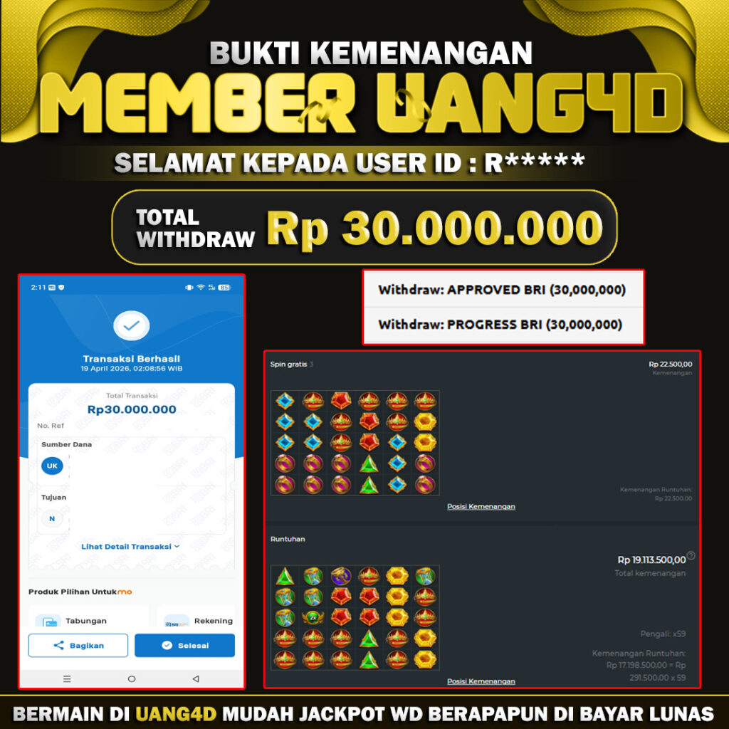 Jangan lewatkan kesempatan untuk meraih kemenangan besar. Daftar sekarang di UANG4D dan rasakan pengalaman bermain slot terbaik yang pernah ada! Putar gulungan, menangkan jackpot, dan jadilah bagian dari komunitas pemain sukses kami!