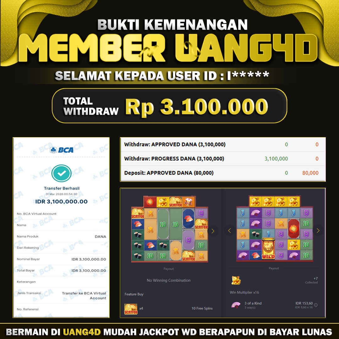 Jangan lewatkan kesempatan untuk meraih kemenangan besar. Daftar sekarang di UANG4D dan rasakan pengalaman bermain slot terbaik yang pernah ada! Putar gulungan, menangkan jackpot, dan jadilah bagian dari komunitas pemain sukses kami!