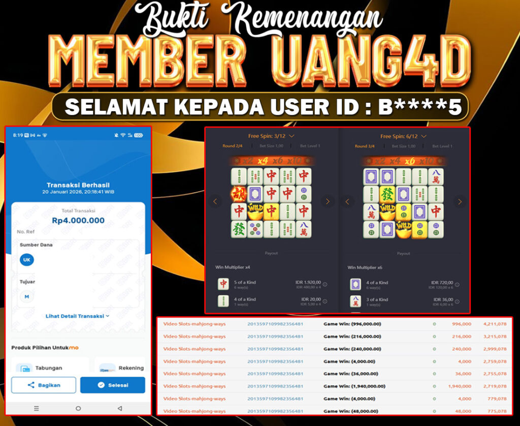 UANG4D –JACKPOT SLOT MAHYONG WAYS 21 JANUARI 2026, Jackpot Slot, Kemenangan Slot, Bukti Kemenangan Slot, Kemenangan Slot PG SOFT Play, Menang Slot online, Slot Gacor, Situs Aman Terpercaya, Withdraw Berapapun Pasti DI Bayar Tuntas, Maxwin Slot Online.