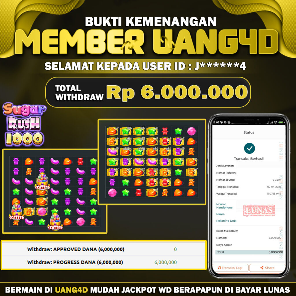 UANG4D JACKPOT SLOT Sugar Rush 07 April 2026 Kemenangan Slot, Bukti Kemenangan Slot, Kemenangan Slot Pragmatic Play, Menang Slot online, Slot Gacor, Situs Aman Terpercaya, Withdraw Berapapun Pasti DI Bayar Tuntas, Maxwin Slot Online.