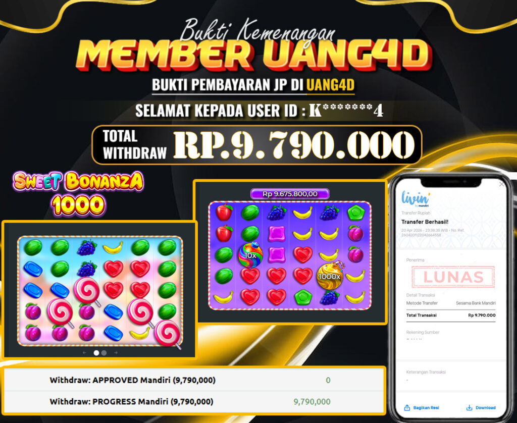 UANG4D –JACKPOT SLOT SWEET BONANZA 1000 21 APRIL 2026, Kemenangan Slot, Bukti Kemenangan Slot, Kemenangan Slot Pragmatic Play, Menang Slot online, Slot Gacor, Situs Aman Terpercaya, Withdraw Berapapun Pasti DI Bayar Tuntas, Maxwin Slot Online.