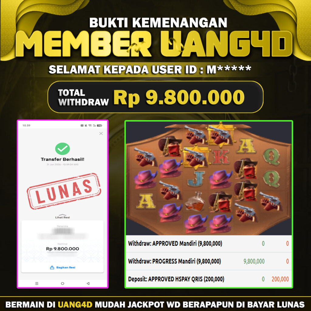Jangan lewatkan kesempatan untuk meraih kemenangan besar. Daftar sekarang di UANG4D dan rasakan pengalaman bermain slot terbaik yang pernah ada! Putar gulungan, menangkan jackpot, dan jadilah bagian dari komunitas pemain sukses kami!