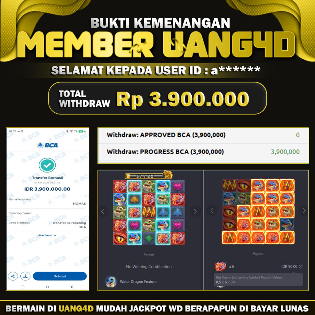 Jangan lewatkan kesempatan untuk meraih kemenangan besar. Daftar sekarang di UANG4D dan rasakan pengalaman bermain slot terbaik yang pernah ada! Putar gulungan, menangkan jackpot, dan jadilah bagian dari komunitas pemain sukses kami!