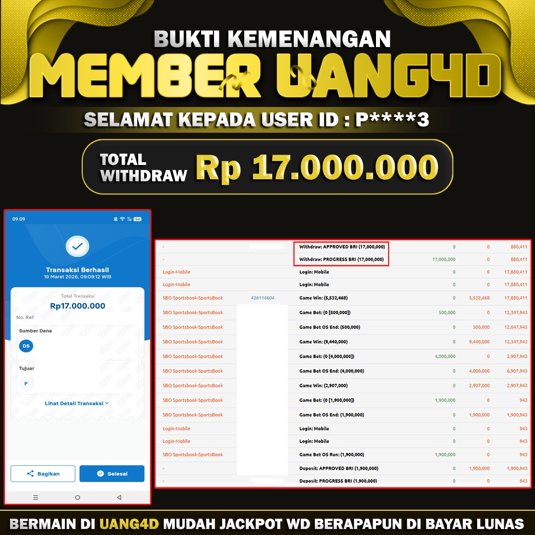 UANG4D JACKPOT SPORTBOOK MAIN SBO SPORTBOOK 19 MARET 2026, Jackpot Sportbook, Kemenangan Sportbook, Bukti Kemenangan Sportbook, Kemenangan Sportbook SBO Sportbook, Menang Sportbook Online, Sportbook Akurat, Situs Aman Terpercaya, WD Berapapun Pasti DI Bayar Tuntas, Jackpot Sportbook.