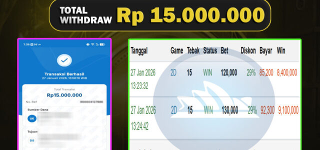 TOTAL KEMENANGAN : Rp. 15.000.000,-